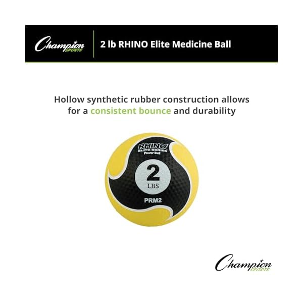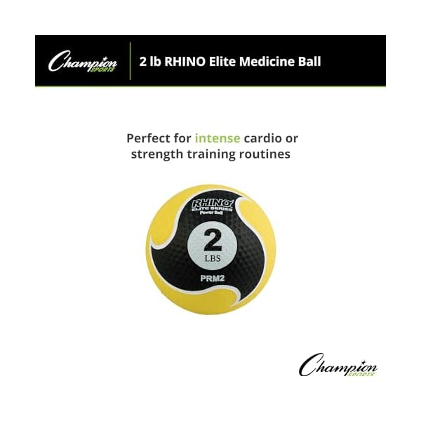 The Champion Sports Rhino Skin Elite Medicine Ball offers exceptional durability and versatility. Made with a Rhino Skin rubber cover and a hollow air-filled core, this medicine ball is sure to withstand the most intense workouts while maintaining its shape, weight, and bounce. The textured surface of this weighted ball provides superior grip, making it easy to use during any number of intense cardio or strength training routines.