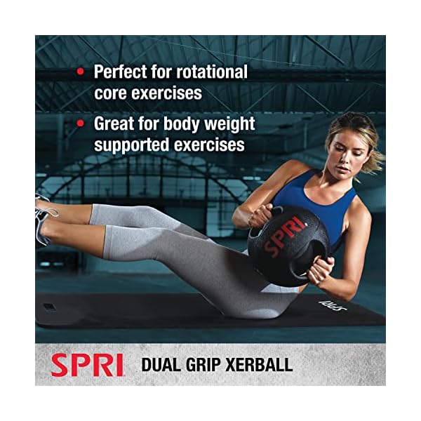 SPRI weighted exercise ball with thick handles provides comfort and leverage for an intense routine so you can feel more in control of your everyday workout. Our exercise balls for working out are made to handle any force or exertion from your exercise routine so you can be proud of reaching your fitness goals. Thick handles provide expansive rotational movement for sport activities such as golf swings and tennis strokes. Conduct abdominal exercises, upper extremity cross-body patterns, lower-body dynamic and locomotor drills. A complimentary instruction sheet is included about the safety and uses of the SPRI medicine ball as well as an exercise guide for various routines. This exercise tool is great for toning abdominals, increasing core strength, and coordination.