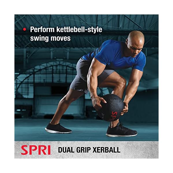 EASY TO GRIP: SPRI weighted exercise ball with thick handles provides comfort and leverage for an intense routine so you can feel more in control of your everyday workout.