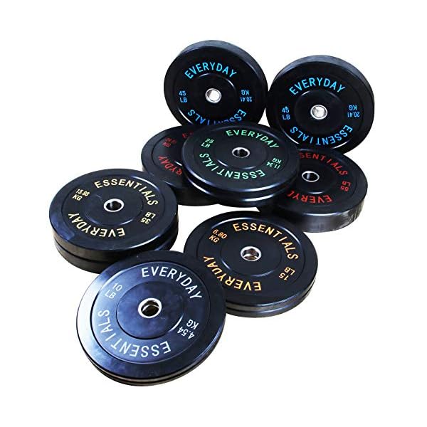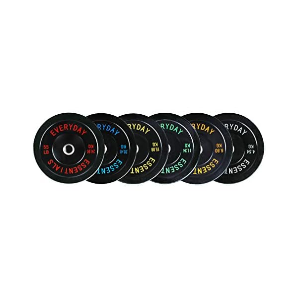 Each bumper plate is color coded for easy identification and labeled in both lbs and kgs