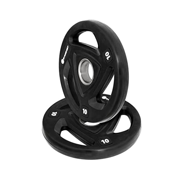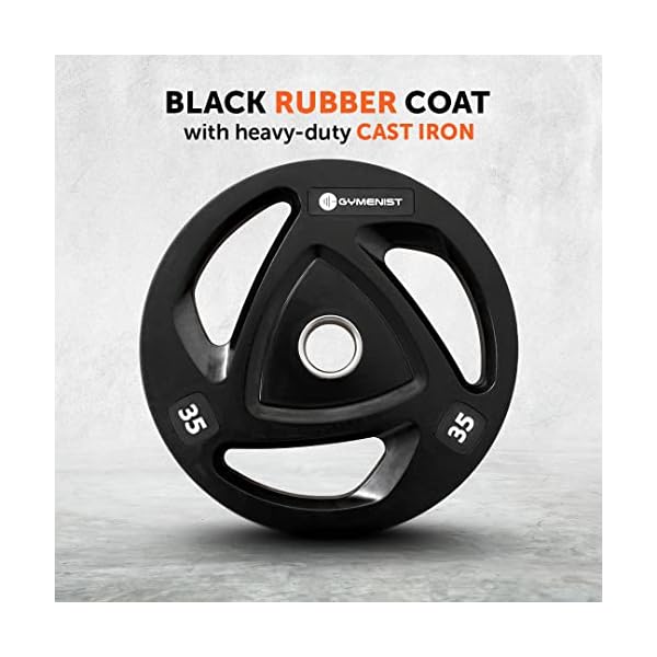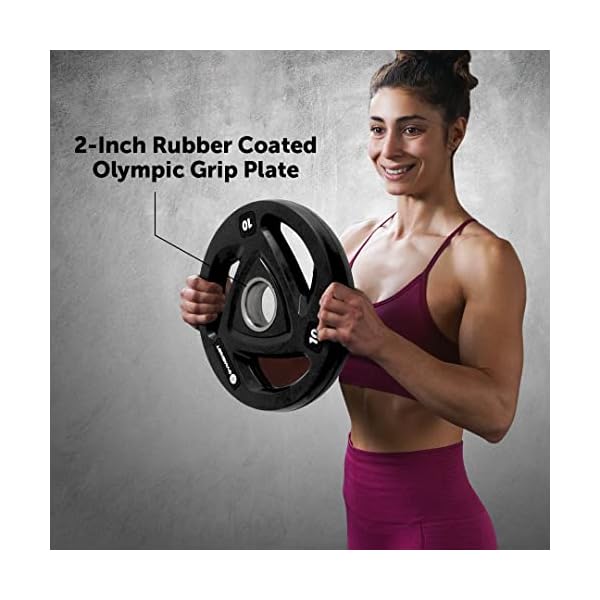 Design: The rubber metal lifting plates feature 3 large openings with strips on them for easy grip. This allows you to insert the plate with ease into any Olympic bar and perform a high-intensity Excellent workout at home or the gym.