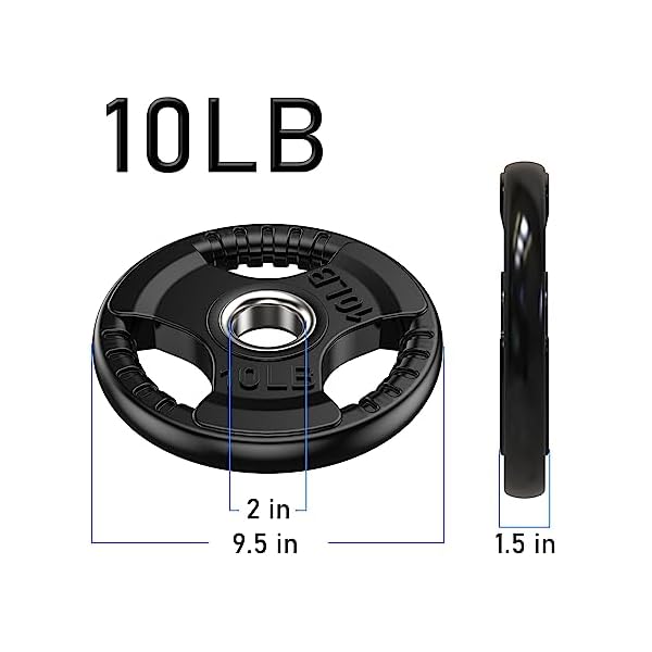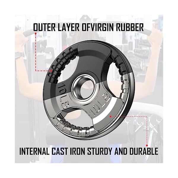 High-Quality Material: BOLUX rubber plates have a solid iron core and slide rubber surface. This design can protect the floor from damage and ensure enough weight when you do exercise. The strong steel ring insert can help you assembly the barbell easily.The rubber plate is made with top-quality materials to ensure durability and longevity.