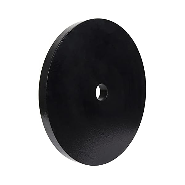Made of solid cast iron with a 2-inch center hole fits any Olympic bar with diameter 2” or less; Can be used with 2” dumbbell bars too
