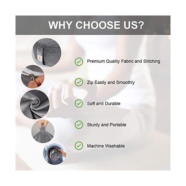 ✅HIGH QUALITY. The treatment of dehydration, high temperature washing and ultraviolet fumigation ensures natural buckwheat hulls are low water content, clean and flour free. Velvet cover is soft and durable, which is also shrink free and fade resistance. Inner case cover of grey fabric is sturdy.