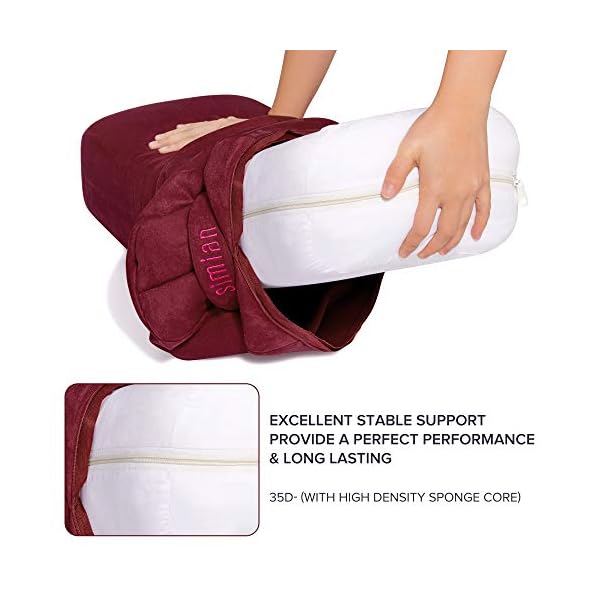 ▨OVERVIEW: With its space-saving & Ergonomic rectangular shape, SIMIAN rectangular yoga bolster features 35D PU fill to create a firm and excellent support cushion that provides superior support and cushioning. The yoga bolster pillow has a removable cover with hidden zipper construction and made from our plush, soft and absorbent suede mico-fiber fabric to keep you dry and comfortable.