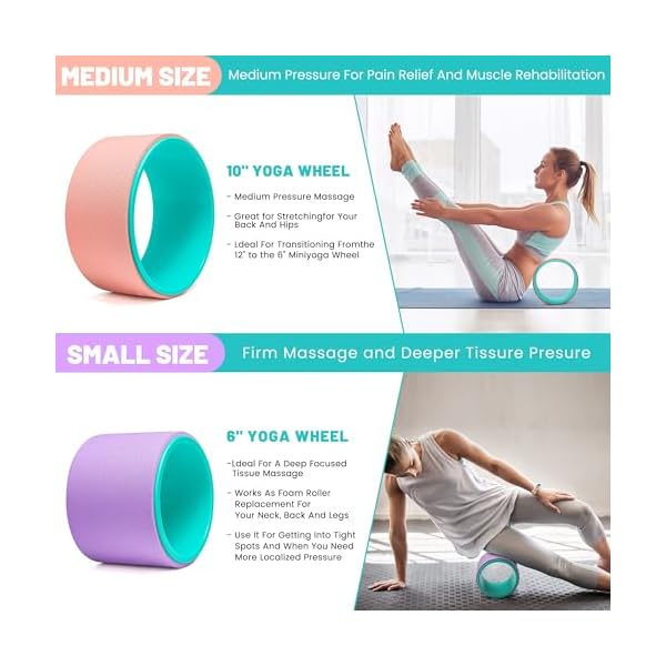 Stretching for back pain relief: yoga set can meet almost all your needs for improving balance and stretching. It can also relieve your back pain effectively,This Yoga back wheel can help keep your back loose and opened up, relieve to relax your back pain, improve body balance. Great for chronic back pain.The yoga wheel is useful in ache-relieving routines as you wind down from busy workdays.