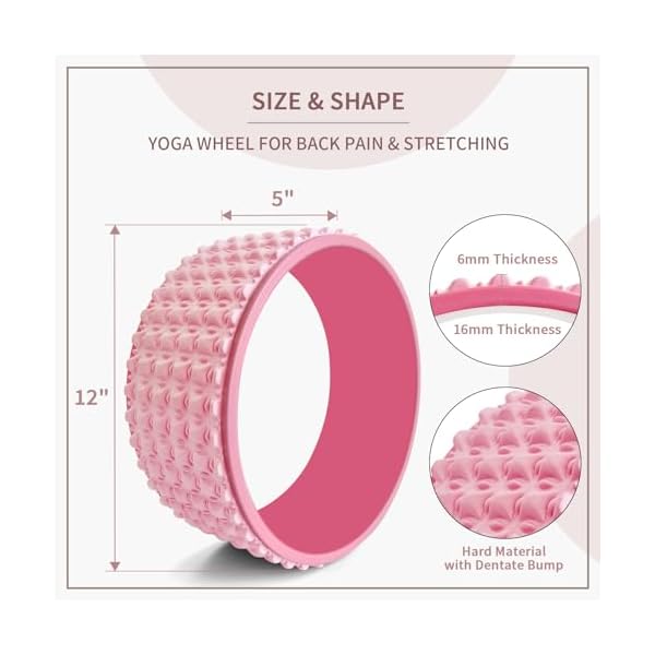 Yoga Wheel – Back Stretcher Back Roller Wheel for Deep Tissue Massage Foam Roller for Back Pain Relief & Stretching – Back Cracker Wheel or Back Cracking Device Pink 12”