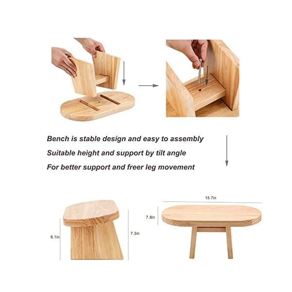 Comfortable Kneeling Stool:Focus on ergonomics,bench will give you a Comfortable meditation posture easily and freely leg movement.It has a suitable height and inclination (L: 15.7, W: 7.8, Front H: 6.1, Back H:7.3 ),reduces you legs pressure.Supports you spine and makes the posture more natural and straight.