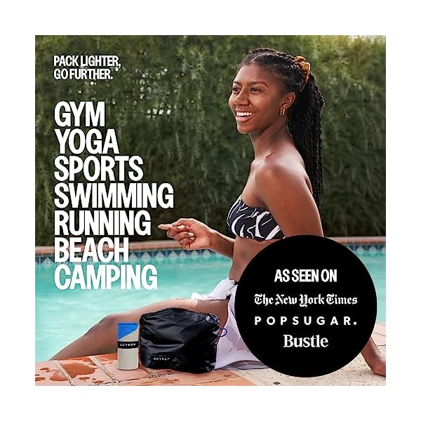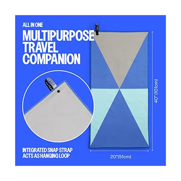 COMPACT, LIGHTWEIGHT: With an integrated snap strap closure that doubles as a hanging loop over the door, your backpack, or bottle. the large thin towel rolls up into a packable travel-friendly zippered case. Bag Size: 7″ x 5″ in