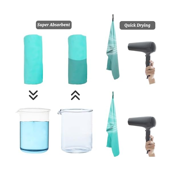 QUICK-DRYING: Microfiber is known for its rapid drying capabilities. It can be reused in a short time, ideal for traveling, outdoor activities and sports.