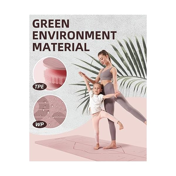 Eco-Friendly Exercise Mats: Strictly selected TPE environmental protection material, SGS & TUV double certification, our Professional TPE yoga mats are non-toxic and odorless, polymer material waterproof and sweat-proof, and prevent hand-slip, and easy to clean, They are truly eco-friendly, healthy and recyclable.