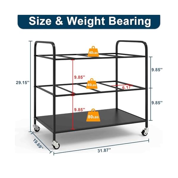 Sturdy & Spacious: 31 × 19× 29inch. Sturdy heavy duty yoga mat shelf can storage at least 16 pcs roller mats.