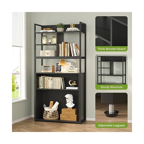 【Easy to Install】Come with comprehensible detailed instructions and labeled parts to help you install the black bookshelf easier without taking a long time.