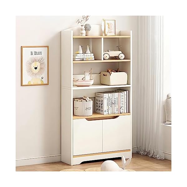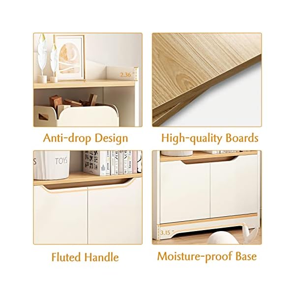 Stable & Durable: Made of high-quality MDF, this wood bookshelf has a robust load-bearing capacity. The cabinet door adopts a grooved pull handle without projection, which can avoid accidental collision and damage;
