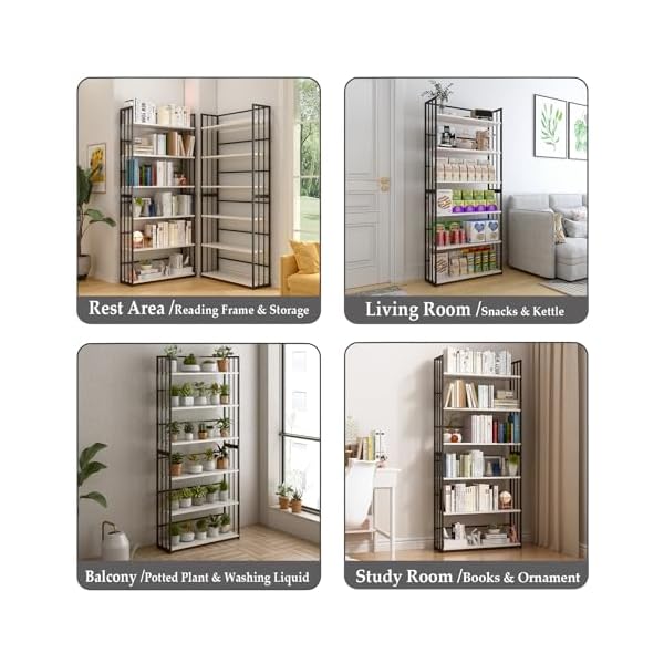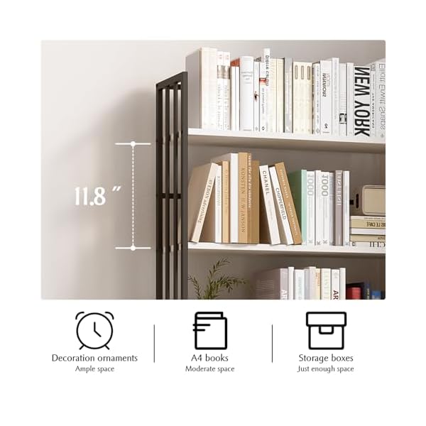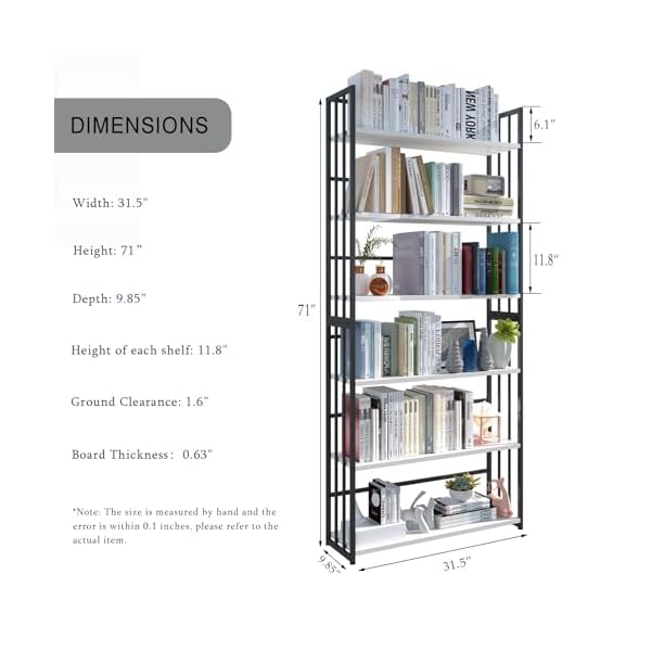 SPECIAL DESIGN – The bookshelf has a three-sided fence designed to keep books upright and keep items from falling. The 9.85-inch depth, 11.8-inch height between each shelf, 6 tiers design ensures ample storage space;