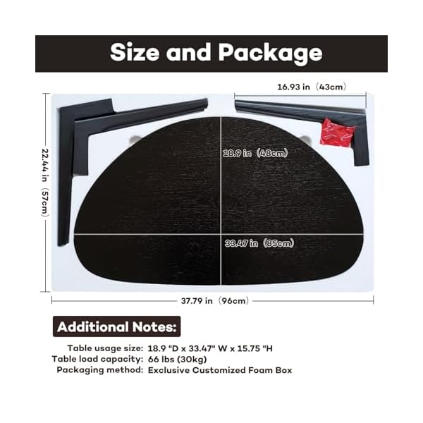 SIZE–Assembled dimensions: 18.9″D x 33.5″W x 15.76″H. The table top can hold up to 150 lbs.