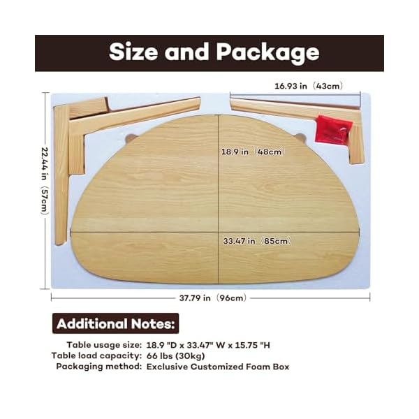 SIZE–Assembled dimensions: 18.9″D x 33.5″W x 15.76″H. The table top can hold up to 150 lbs.