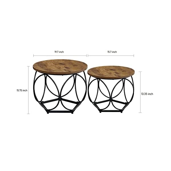 【Modern Geometric Design】This coffee table set is designed to transform your living space for more comfortable and relaxing time. The smooth and stylish design can save your time to find different table for perfect match decor.Check out the round top, geometric base, rustic surface, and black metal frames, they will easily catches your guests’ eyes when they come in.