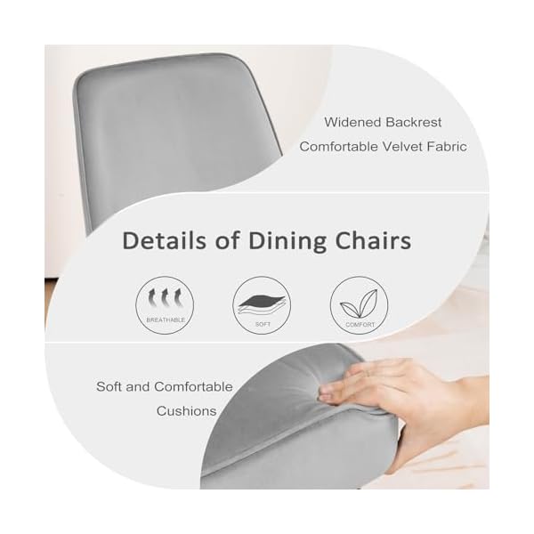 The KithKasa dining chairs are made of metal construction, with soft velvet cushions and gold finish legs. equipped with an anti-slip footpad, which keeps you free from scratching your floor and getting the noice when moving.