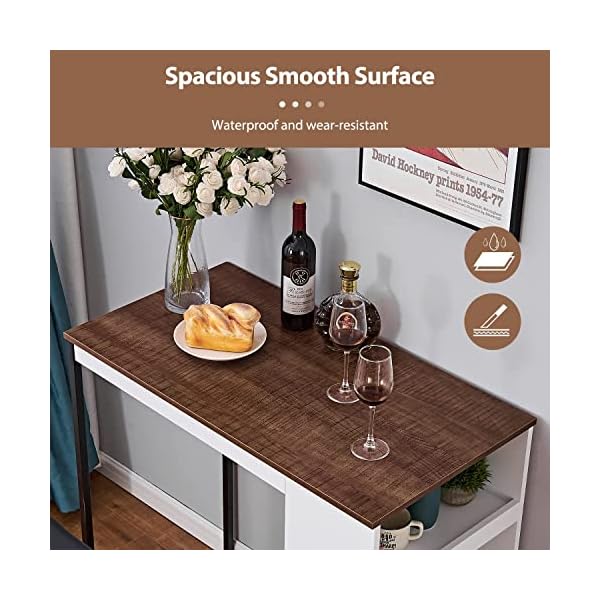 SPACE SAVING DESIGN: Features three shelves are perfectly for placing drink ware, flatware, bottles, glass or anything else you want keep on hand. Two barstools can be conveniently tucked under the table when not in use