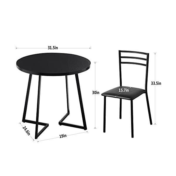 Durable & Intimate design – The round design tabletop scheme uses P1 grade high-quality board, matches the steel frame ensures this dinner table is sturdy and long term use. Max Load: 330 Lbs; The chair is equipped with a cushioned seat to relieve your body after a hard day.
