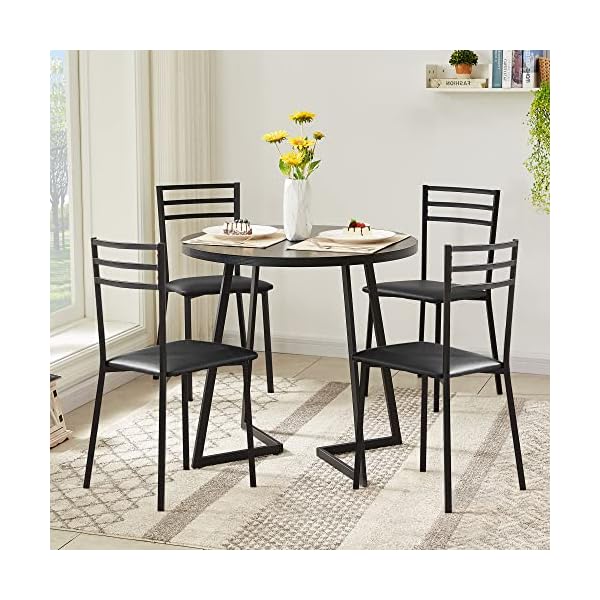 Modern & Simple Stylish – A great look for this bar table with stools is indispensable. This black-looking 5 piece dining room table set with a solid steel structure and wood grain table tabletop will blend perfectly into your living room and kitchen, bringing simplicity and elegance.