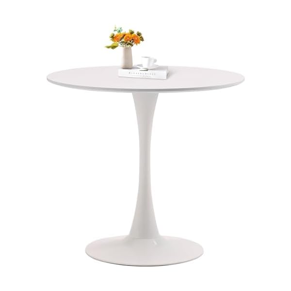 😄Modern Design: This round dining table features a mid-century modernist style, with a unique look and sleek silhouette leading to a minimalist lifestyle. The tulip design cleverly replaces traditional cumbersome table legs with a strong central base, also adding extra beauty. The tulip table has a hard-wearing finish to prevent wear and erosion in daily use, and also makes it more smooth and shiny.
