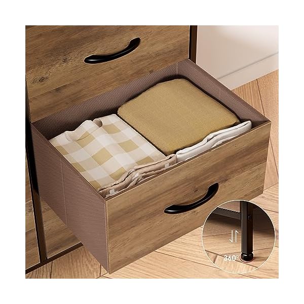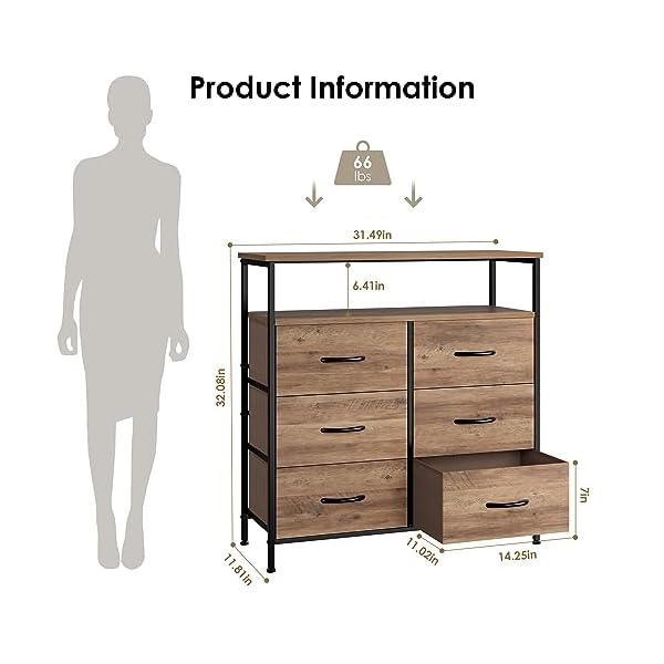 Durable Material: The wooden top has strong bearing capacity, while the 6 fabric drawers are more portable, breathable, and not easy to scratch the clothes, the MDF top combined with metal frame, cross support rods and drawer support frames ensure the stability of the bedroom chest of drawers