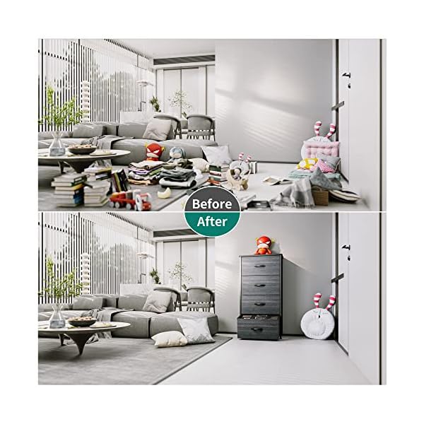 LARGE CAPACITY- 4 deep drawers provide multiple storage options and ample room to make your living space neat and tidy; Overall dimensions: 17.7″ L x 11.8″ W x 38.6″ H, drawer dimension: 15.7″ L x 11.2″ W x 8.3″ H