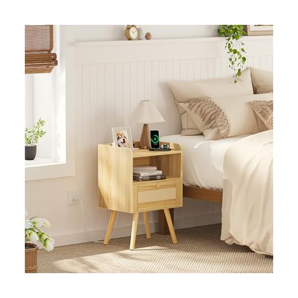 [Fresh and Elegant Style]: Need a storage table without disturbing the home colour balance? This rattan side table with light wooden colour is exactly what you need. What’s more significant, the PE rattan design on the drawer surface brings an irresistible and attractive boho vibe to your space