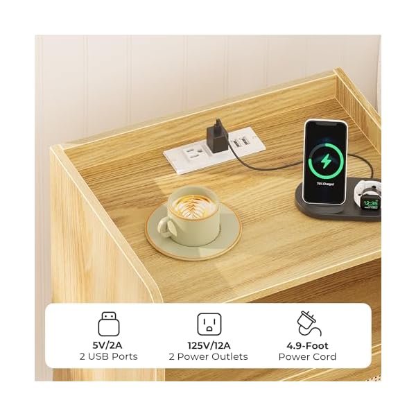 [Two Is Better]: Set of 2 rattan nightstands, a more space-coordinated home space! Plug in your lamps or phones on this narrow end table with 2 AC outlets and 2 USB ports, it will provide power close at hand
