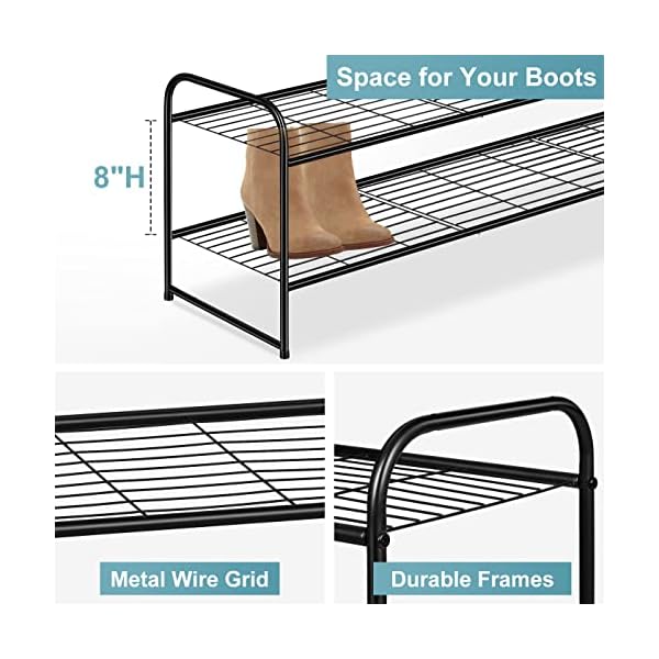 【Long Shoe Rack for 18 Pairs of Shoes】 Size of metal shoe rack: 42.7″Wx11.4″D x18.7″H. Longer 2-tier shoe organizer for closet can store 18 pairs of shoes for men, women and kids, each tier wide enough storage for 6 pairs of men’s sneakers, tennis shoes etc, extra bottom storage for flats, slippers and flip flops enough;