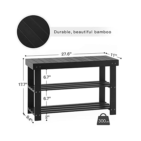 STABLE STRUCTURE- The shoe bench is made of 100% natural bamboo can hold up an impressive 300lbs. Smooth edges and sunken screws prevent snagging.