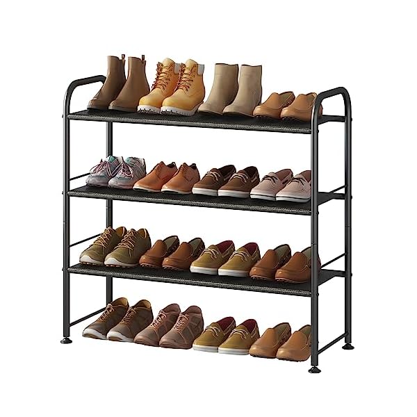 【Sturdy and Durable】The shoe rack is made of thickened metal tube with painting coated finish which is smooth and rust-resistant. It is easy to clean and maintain, you can wipe it directly with a damp cloth. Adjustable feet prevent sliding or scratching the surface and cope with uneven floors.