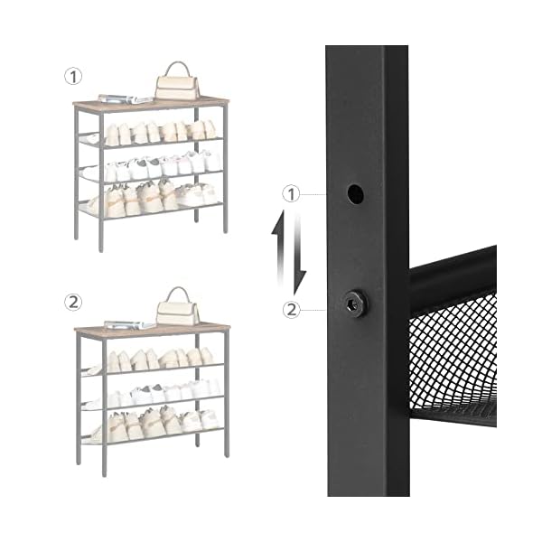 Tilted or Leveled, You Decide: This shoe rack with wide open top and adjustable mesh shelves is capacious to organize whole family’s shoes. You can freely adjust the angularity of each mesh shelf to better organize your entrance. For high-heels and boots, you can accommodate them properly by removing a mesh shelf