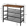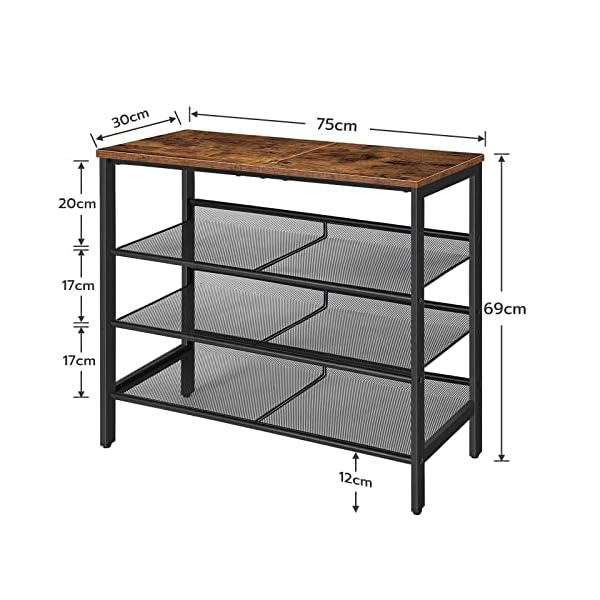 Solid, Stable, Safe: This shoe rack is constructed of premium particleboard and metal mesh shelves. The top loads up to 44 lb and each mesh bears up to 22 lb, so you can enjoy safe use of this shoe rack. Of course you can expect long serviceability because the frame is hard to bent and age