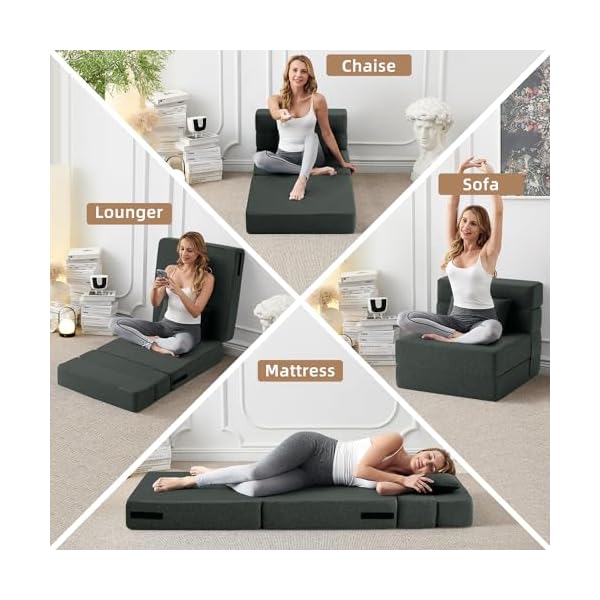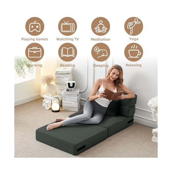 【Free Assembly & Easy Conversion】This foldable sofa is lazy seating, and does not require assembly, pull it out and use it. It is easy to fold, store, and carry and can be converted into a lounge and mattress to meet your needs for working, reading, relaxing, and any other occasion.