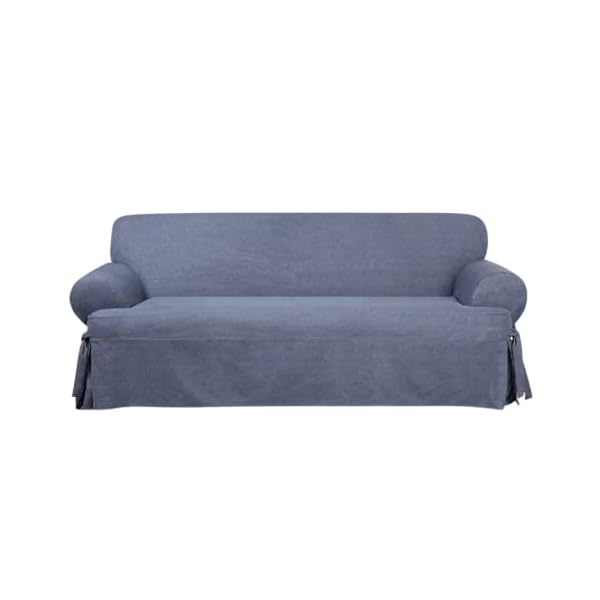 SLIPCOVER: Refresh and protect your furniture with the SureFit Authentic Denim Slipcover. Made of 100% cotton, this durable cover exudes a fashionable blue jean appeal and provides long-lasting durability while protecting your sofa from stains, spills, and pets.
