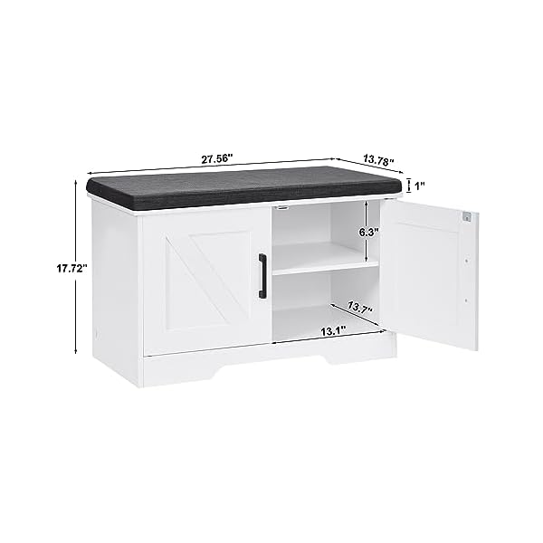 Keep Your Shoes Organized: The depth of bench is 13.4 inches, which makes it easily to put in your shoes, meanwhile shoes of various heights can be placed by adjusting middle movable boards. The bench doors design ensures not only your privacy, but also a tidy space.