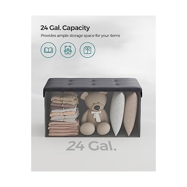 This SONGMICS storage ottoman is a perfect piece for your home. With its clever design, it can be used as a shoe bench in the entryway, a bed end bench, additional seats in the living room, or a simple storage unit for more space.