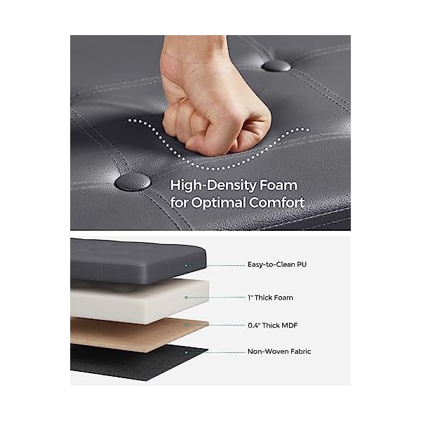 [Folds Flat in a Jiffy] Simply fold the lower part of the bench for space-saving storage when out of use, then tuck the ottoman under your bed, above the wardrobe, or in the cupboard