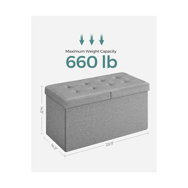 Designed with durability in mind, the SONGMICS storage ottoman bench features solid construction with thick MDF panels and metal corner guards. It can support up to 660 lb (300 kg) and withstand the test of time, making it a reliable choice for your home.