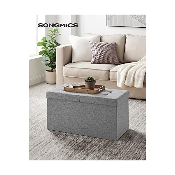 This SONGMICS storage ottoman bench doubles as a practical storage unit and furniture. It offers ample space for blankets, books, and other items, keeping your living area organized and tidy. Plus, it serves as a comfortable extra seat or footrest for your leisure time.
