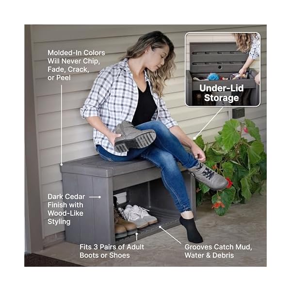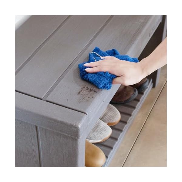 The Step2 Lakewood Boot Bench can help you organize your home more effectively. This multipurpose shoe storage bench is the ideal combination of aesthetic and usefulness, designed to complement both indoor and outdoor settings. This bench fits in perfectly in your mudroom, barn, garage, porch, or any other space, making it a versatile addition to your house. The bench’s top lid opens to expose additional storage space, ideal for items such as hats, scarves, pet leashes, keys, umbrellas, and more, assisting you in keeping your environment clean and neat. But it’s not just for storage; thanks to the movable top seat, this bench also serves as a comfy lounging place. It’s a great place to put on or take off your shoes, making your daily routine easier. The bottom storage compartment has molded-in tread grooves that make it easy to drain and clean, which is especially beneficial for muddy or damp shoes. This boot bench is constructed to last and is easy to clean thanks to its double-wall structure. To clean it, simply use mild soap and water or hose it off. Step2 Lakewood Boot Bench, where practicality meets elegance, is an elegant, adaptable, and utilitarian addition to your house.