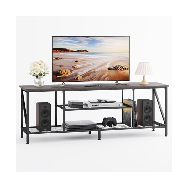 Modern Industrial Style – Grey Oak boards match the coolness of the black steel frame in this television stand, which is both High-end and functional. Match your home decor perfectly!