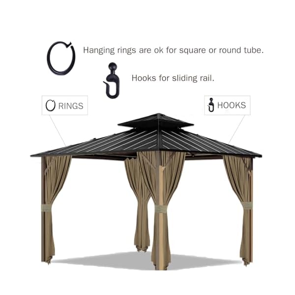 【EASY INSTALLATION】Inserting the rings or hooks into the curtain loops and hang over existing frame of gazebo. We also provide with an instruction for you.