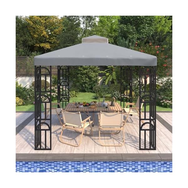Gazebo 10×10 Canopy Replacement Top,Double Tiered Gazebo Covers with Air Vent,Pavilion Cover Sunshade Polyester,for Garden Canopy, Patio Gazebo Canopy, Grill Gazebo Canopy (Gray)