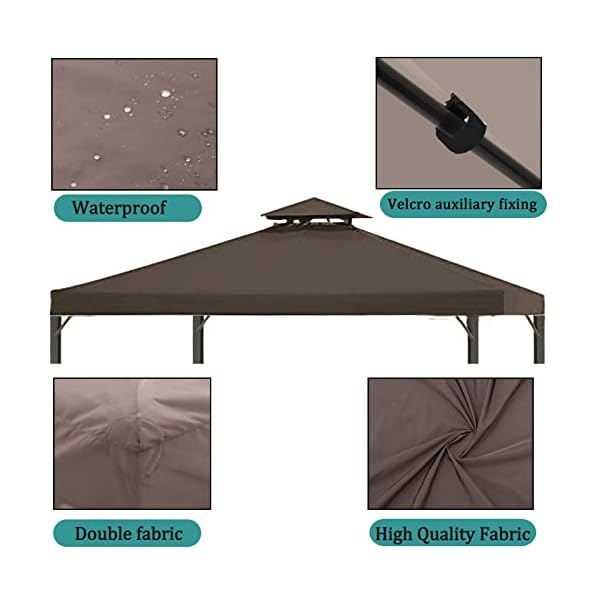 SIZE: Gazebo canopy replacement 10x10ft, bottom tier size: 118*118in, upper tier size: 31.5*31.5in.Color: Brown. To avoid unnecessary trouble, please measure the size of the gazebo carefully before purchasing. Please refer to the picture for the detailed dimensions of the gazebo canopy. If you have any other questions, please feel free to contact us.