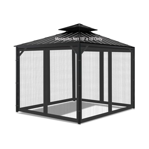 ★Excellent Design: Double-sided zipper design on all 4 sides makes it easier for you to get in and out. We offer plastic hooks and loops for you to attach the mesh to the gazebo. Just zip it up, you can enjoy your courtyard or garden view outside in the hot summer.