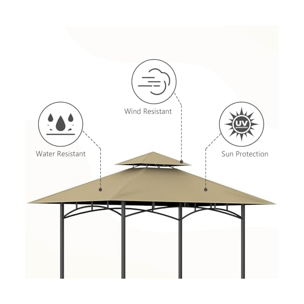 【Special Design】The BBQ replacement canopy roof has two different pockets in each corner so you can make it fit your grill gazebo. The double top design not only improves ventilation, which reduces internal temperatures and smoke, but also enhances the stability of the canopy.
